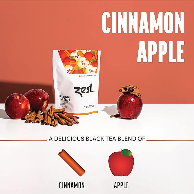 Zest 150mg High Caffeine Energy Loose Leaf Blend - Cinnamon Apple Black Tea - 4 Oz - All Natural Strong Flavored Healthy Coffee Alternative Highly Caffeinated Substitute - Perfect for Keto Diet